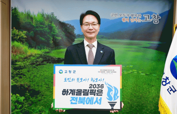 최영일 순창군수의 지목을 받아 챌린지에 동참한 심덕섭 고창군수는 '도민의 뜻 모아! 힘 모아! 2036 하계올림픽은 전북에서!'라는 슬로건을 내세웠다.