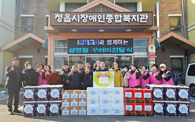 정읍농협은 지난 24일 지역 내 경제적 어려움을 겪고 있는 장애인 20가정을 위해 200여만원 상당의 설 명절 꾸러미를 시 장애인복지관에 기탁했다.