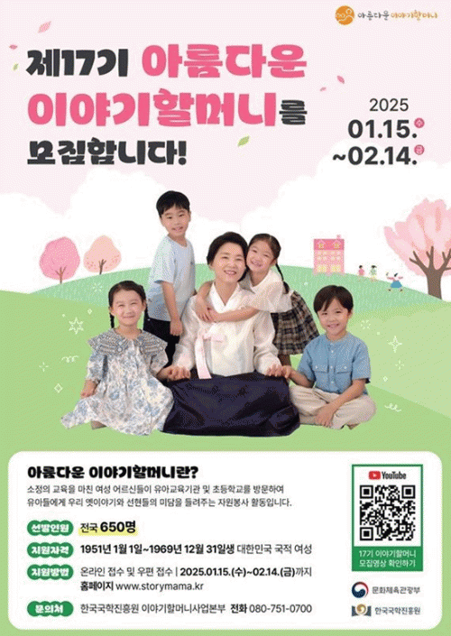 이야기할머니사업단 누리집에서 내용을 확인해 2월 14일까지 우편이나 온라인으로 접수하면 된다.
