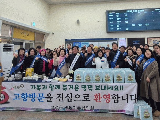 곡성군 귀농귀촌협의회는 가족과 설 명절을 보내기 위해 곡성을 방문하는 귀성객들을 따뜻한 미소로 맞이했다.
