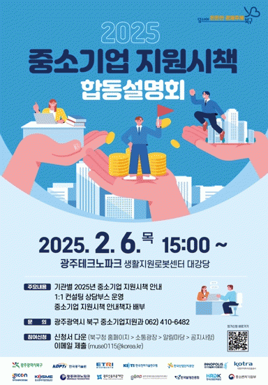 또한 이번 간담회에는 북구를 비롯한 중소벤처기업진흥공단, KOTRA, 한국산업단지공단, 광주신용보증재단, 광주테크노파크 등 총 17개 기관이 참여하여 자금 지원, 수출 촉진, 기술 고도화, 지식재산권 보호 등 중소기업의 경영 지원을 위한 총 93개의 주요 시책을 설명할 예정이다.