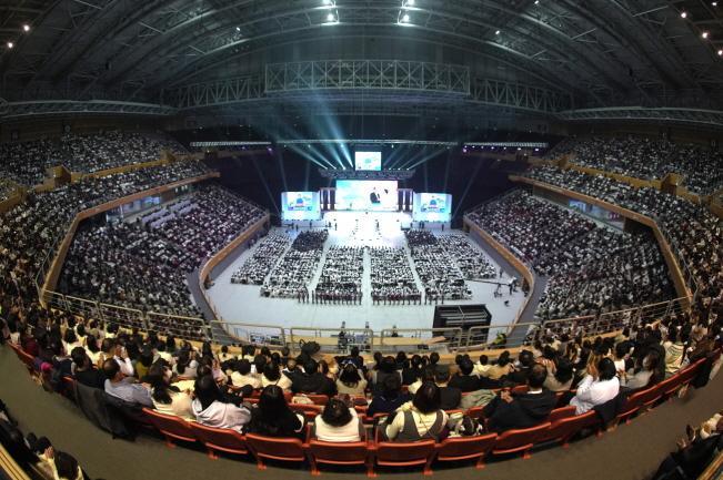 세계연합예배에는 한 총재를 비롯해 문연아 선학학원 이사장, 문훈숙 효정한국문화재단 이사장, 정원주 천무원 부원장, 송용천 세계선교본부장, 황보국 한국협회장과 국내외에서 찾은 신도 등 총 2만여 명이 참석했다.