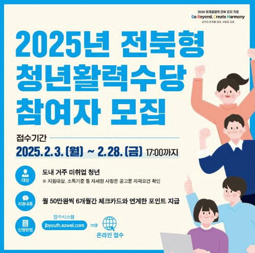 모집 인원은 총 94명이며 신청은 전북형 청년활력수당 사이트에서 가능하다.