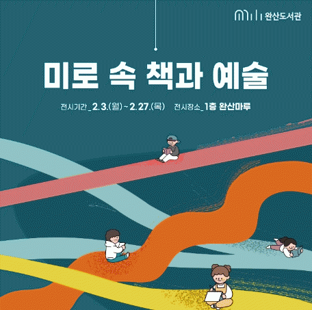 지난해 7월 전시실을 갖춘 복합문화공간으로 재개관한 완산도서관은 개관 전시 ‘그림, 책과 친구가 되다’와 청년 작가들이 주축이 된 ‘낯선 다정함’ 전시에 이어 을사년 새해 첫 전시로 ‘미로 속 책과 예술’을 주제로 한 이번 전시를 마련했다.