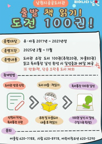 남원시공공도서관은 선착순 유아 40명, 아동 40명 총 80명에게 독서 통장을 완성하면 인증서와 메달을 수여한다.