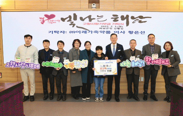 주인공은 ㈜이레가축약품 황은선 대표이사로, 지난 3일 해남군청을 찾아 해남군 고향사랑 기부제에 2,000만원을 기탁했다.