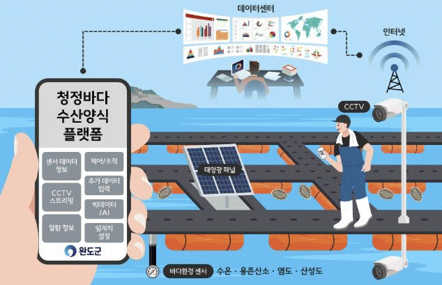 군 전산실에 구축된 데이터센터에서는 양식 어가로부터 수집된 데이터를 수산양식 학술 자료로 활용하여 급이 상황, 생육 환경, 적조, 고수온 등의 정보를 양식 어가에 실시간으로 제공한다.