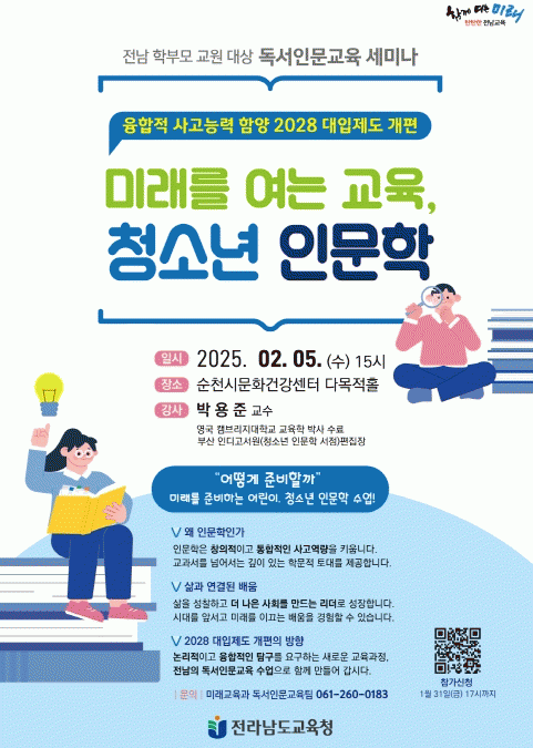 이번 세미나는 2022개정 교육과정과 2028대입제도 개편안을 반영한 청소년 인문교육의 중요성을 강조하고, 전남교육가족과 함께 변화하는 미래사회를 준비하기 위해 마련됐다.