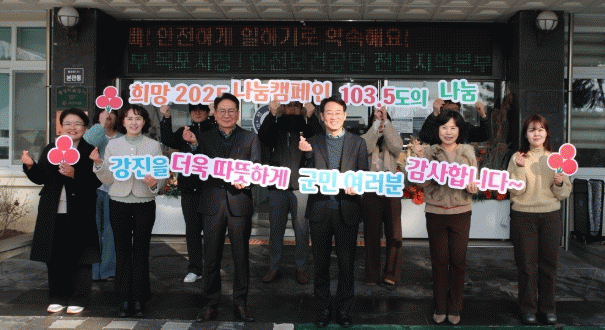 윤미경 주민복지과장은 “군민들의 따뜻한 관심과 동참이 강진군을 더욱 가치 있는 지역으로 만드는 원동력이 됐다”며 “앞으로도 더 많은 나눔이 확산될 수 있도록 노력하겠다”고 말했다.