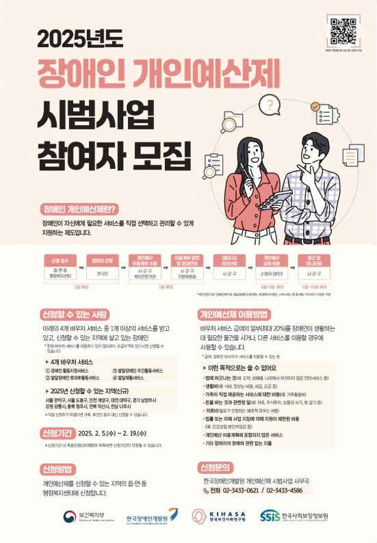이번 사업은 장애인이 자신의 필요에 따라 예산을 직접 운용할 수 있도록 지원하는 제도로 기존의 획일적인 복지 지원 방식에서 벗어나 맞춤형 복지를 실현하는 데 초점을 맞추고 있다.