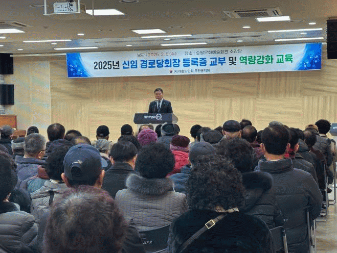 교육은 지난해 교육 미참여자와 올해 신규 선출된 경로당 회장 등 총 138명이 참석했고, 경로당 회장 등록증 교부, 경로당 운영 지침 안내, 운영보조금 회계 교육 등으로 진행됐다.