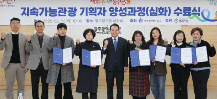 이날 수료식에서는 교육을 이수한 8명의 교육생을 대상으로 수료증을 수여했으며, 김완수 한국관광공사 광주전남지사장, 신홍식 광주관광기업지원센터장이 참석해 교육생들의 소감을 듣고 의견을 공유하는 시간을 가졌다.