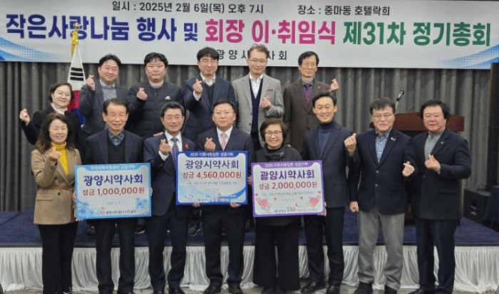 광양시약사회는 매년 △사랑나눔복지재단 후원금 기탁 △저소득층 의료보험료 지원 △독거노인 후원 △환경미화원 영양제 전달 등 다양한 사회공헌 활동을 이어오고 있다.