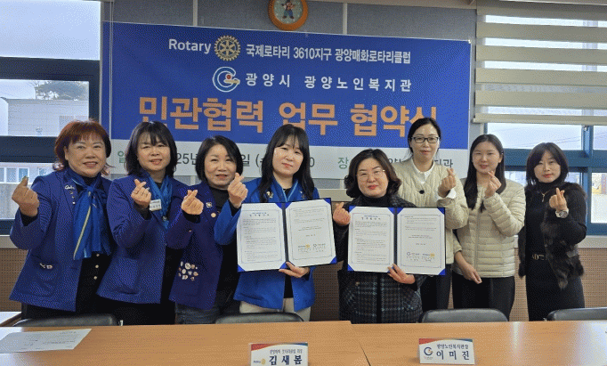 한편, 광양매화로타리클럽은 지역사회 발전과 복지 증진을 위해 다양한 사회공헌 활동을 펼치고 있는 봉사단체다. 주요 활동으로는 ▲치매 어르신 돌봄 봉사 ▲저소득층 주거환경 개선 ▲이동 리프트 차량 지원 ▲이·미용 봉사 등이 있으며, 앞으로도 지역 사회에 실질적인 도움이 되는 나눔 활동을 이어갈 계획이다.