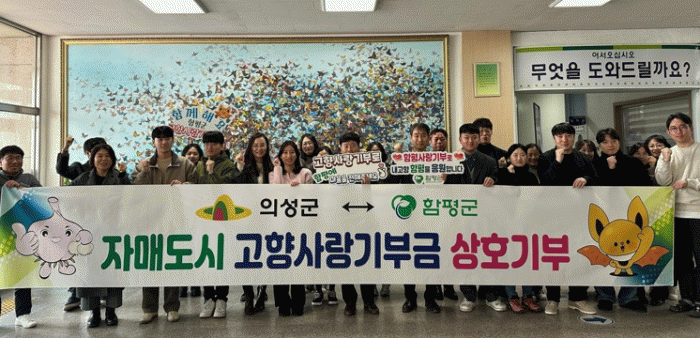 함평군은 9일 “함평군과 의성군이 함께 지난 6일 자매결연 자치단체 간 협력 강화와 고향사랑기부제 활성화를 위해 고향사랑기부제에 상호 기부했다”고 밝혔다.