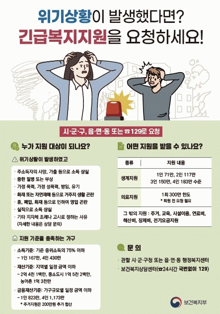 긴급복지 지원이 필요한 시민들은 읍·면·동 행정복지센터, 시청 사회복지과, 보건복지상담센터, 희망복지지원단 콜센터를 통해 상담·지원을 요청할 수 있다.