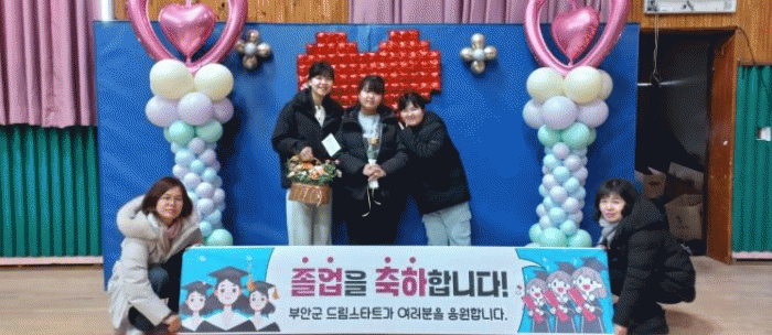 졸업식에 참석한 부모님과 부안군 드림스타트는 준비한 꽃바구니와 큰 박수로 졸업축하와 사랑을 표현했다.