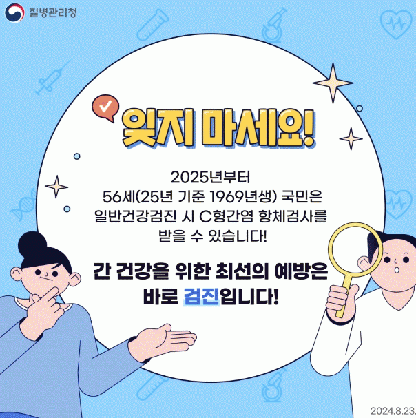 특히 국가건강검진에서 C형간염 항체 양성으로 결과를 통보받은 도민에게는 확인 진단 검사(HCV RNA 유전자 검출 검사)에 필요한 진찰료와 확진 검사비 본인부담금을 최초 1회 전액 지원한다.