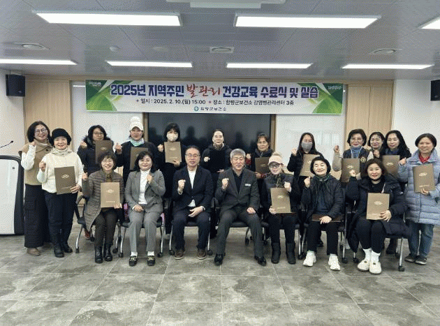 함평군은 11일 “발 마사지 교육 수료식이 전날 오후 함평군 보건소 감염병관리센터에서 성공적으로 마무리됐다”고 밝혔다.