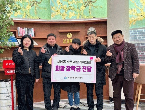 강신태 서남동장은 “지역사회를 위한 나눔 활동을 실천하는 서남동 바르게살기위원회에 진심으로 감사드린다”면서 “이 장학금이 밑거름이 되어 앞으로 밝고 건강하게 성장하는 데 조금이나마 보탬이 됐으면 한다“고 말했다.