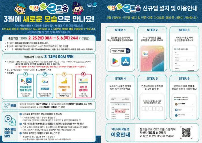 그동안 '착한페이'앱을 통해 다이로움 서비스를 제공해 온 익산시는 오는 3월 새 앱 '익산 다이로움'으로의 개편을 추진한다.