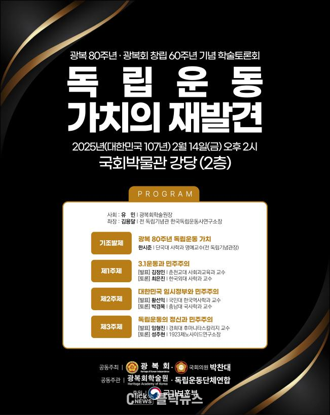 국가보훈부의 후원 아래 광복회 산하 광복회학술원과 독립운동단체연합이 공동주관하는 이번 학술토론회는 광복 80주년 민족사적 대전환기에 독립운동 정신 회복 및 창의적 계승이라는 인식아래, 오늘날의 민주공화국 대한민국의 민주주의는 해방이후 이식된 민주주의가 아니라, 대일항쟁기 독립운동 과정에서 다져진 토착 민주주의에서 기인했다는 독립 운동의 가치를 재발견하려는 노력으로 기획됐다.