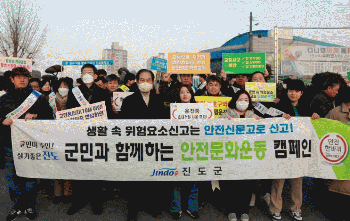 한편 진도군은 이번 운동을 시작으로 다양한 연령층을 대상으로 한 맞춤형 안전교육, 홍보물 제작과 배포 등 지역 내에 안전 문화를 확산하기 위한 활동을 꾸준히 이어갈 예정이다.
