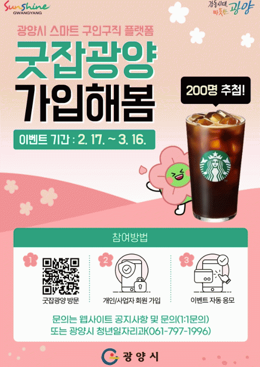 이번 이벤트는 오는 2월 17일부터 3월 16일까지 진행되며, 취업을 희망하는 구직자나 구인을 원하는 사업체 또는 광양시 일자리 정보를 알고 싶은 시민이라면 누구나 참여 가능하다.