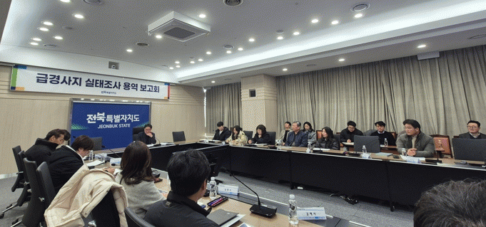 이번 보고회에는 전북자치도 자연재난과장, 도로관리사업소, 14개 시군 담당 과장 등이 참석했으며, 한국방재협회가 수행한 실태조사 용역 결과를 공유하고, 향후 급경사지 재해 예방 대책을 마련하기 위해 진행됐다.