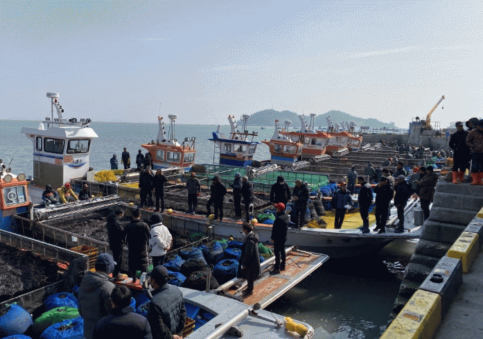 지난해 12월부터 발생한 갑작스러운 이상기온으로 수온이 평년보다 높고 4,200ha의 면허지 등이 추가돼 물김 생산량이 급격히 늘었다고 진도군은 밝혔다.