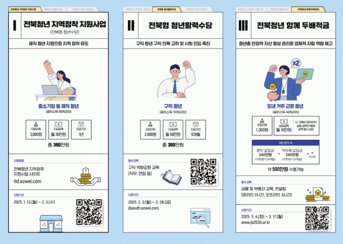 전북자치도는 올해도 청년들의 의견을 반영해 사업을 개선하고, 실질적인 지원이 이루어질 수 있도록 지속적으로 노력할 예정이다. ‘전북청년 지역정착 지원사업’은 1월부터 대상자 모집을 진행 중이며, ‘전북형 청년활력수당’은 이달 말까지 신청을 받는다. 또한, ‘전북청년 함께 두배적금’은 3월 초 모집 공고를 통해 신규 참여자를 선정할 계획이다.