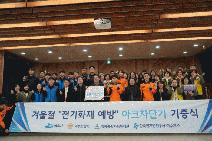 기증식은 여수시청, 여수소방서, 한국전기안전공사 여수지사, 쌍봉종합사회복지관, 대상처 관계인 등 80명이 참석한 가운데 ▲기증판 수여 및 기념촬영 ▲대상처 이동 후 아크차단기 설치 ▲재난안전키트 전달 순으로 진행됐다.