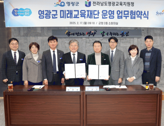 이번 협약의 주요 내용은 △지역 교육발전전략 수립을 위한 상호 협력, △영광군 미래교육재단 운영을 위한 행·재정적 지원, △지역 교육력 제고를 위한 사업 등이다.