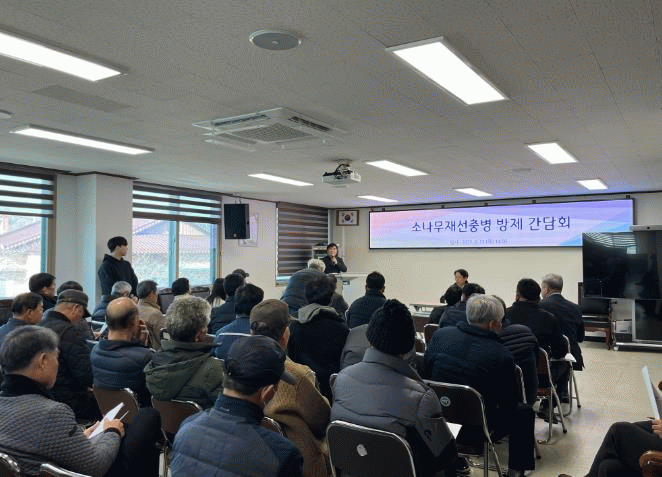 주요 내용은 소나무재선충병 발생원인과 사례, 2025년 재선충병 방제 계획과 질의응답, 확산 방지를 위한 협조사항 등을 논의했다.
