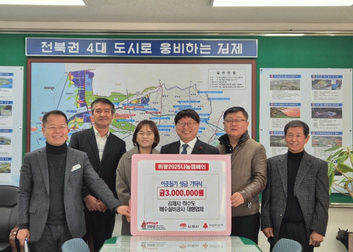 18일 김제시에 따르면 (주)상보산업개발 윤홍식 대표를 비롯해 (유)성주건설 최영재 대표, (유)반도산업 오재웅 대표, (유)매일건설 황희중 대표, 그리고 (유)혜성건설 조선옥 대표가 시에 300만원을 기탁하며 따뜻한 나눔을 실천했다. 이들은 지역사회와의 상생을 도모하고, 어려운 이웃을 위해 마음을 모은 것으로 알려졌다.