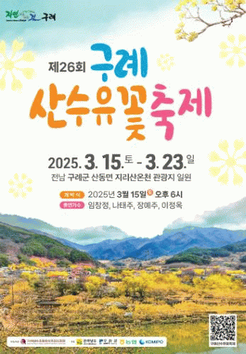 김순호 군수는 “구례를 찾는 방문객들이 봄의 전령사 산수유꽃을 만나 영원한 사랑의 기운을 듬뿍 받아 가시길 바란다”고 전했다.