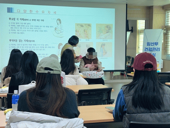 올해 임산부 건강교실은 총 11차수로 구성됐으며, 첫 번째 강의가 지난 13일 진행됐다. 시 보건소는 직장생활, 환경적인 어려움 등으로 초유 수유만 계획하는 임산부들이 많다는 점을 고려해, 강의 주제를 ‘모유수유’로 정하고 전문가 초빙 강의를 마련했다.