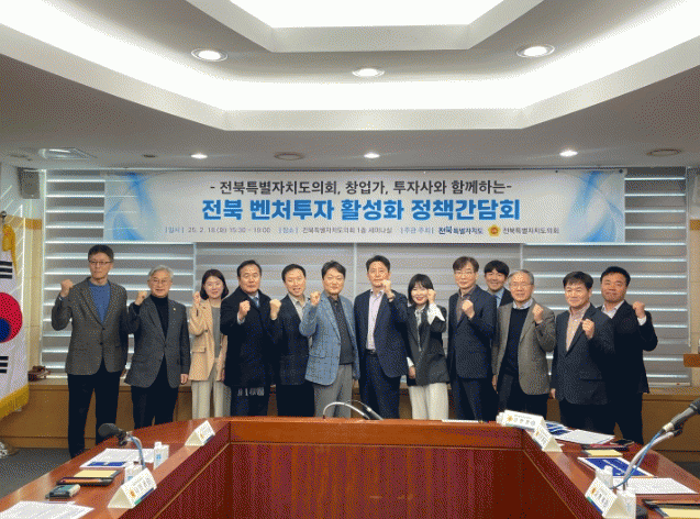 참석한 도의회 경제산업건설위원들은 지역 자원과 지원 제도의 필요성, 그리고 도내 기업들의 성장을 견인할 수 있는 정책적 방향을 제시하며 전북 지역의 벤처투자 활성화를 위한 건설적인 논의를 이어갔다.