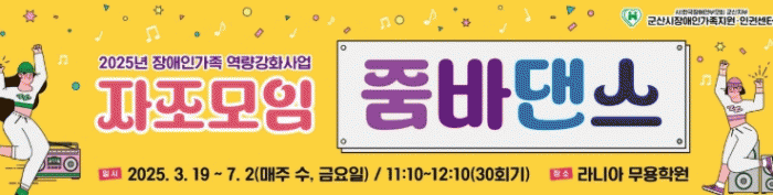 군산시에 거주하는 장애인 가족은 누구나 신청할 수 있으며, 교육 기간은 3월 19일부터 7월 2일까지 매주 수요일·금요일(총 30회)에 진행된다.