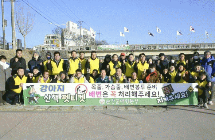캠페인은 순창군청 앞 천변 주차장에서 출발해 경천 산책로와 양지천 산책로를 따라 진행됐으며, 주요 지역에 펫티켓 안내 현수막을 설치했다.