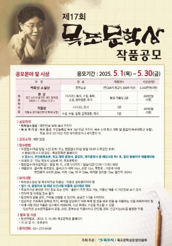 또한, 목포 출신 문인들을 집중 발굴하고 육성하기 위해 목포 출생 또는 목포 거주 3년 이상의 거주자를 대상으로 ‘목포작가상’을 공모한다.