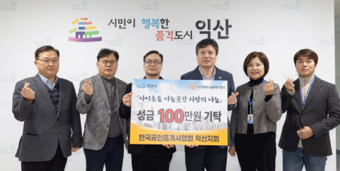 시 관계자는 "해마다 따뜻한 나눔과 사랑을 실천해 주시는 공인중개사협회 익산지회에 감사드린다"며 "소중한 성금은 꼭 필요한 대상자에게 잘 전달될 수 있도록 하겠다"고 전했다.