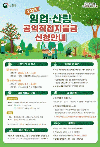 기타 자세한 사항은 산림청 임업직불금 상담센터(연중 운영)에서도 안내받을 수 있다.