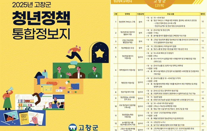 통합정보지에는 ▲고창군 자체 사업 25개 ▲전북특별자치도 지원 사업 13개 ▲중앙부처 사업 16개가 포함됐다.