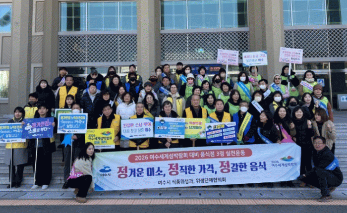 시 관계자는 “2026여수세계섬박람회 성공 개최를 위해 권역별 위생점검과 친절서비스 교육을 주기적으로 실시할 계획”이라며 “음식점 3정 실천 운동을 적극 전개해 친절한 외식·숙박업 분위기 조성에 힘쓰겠다”고 말했다.