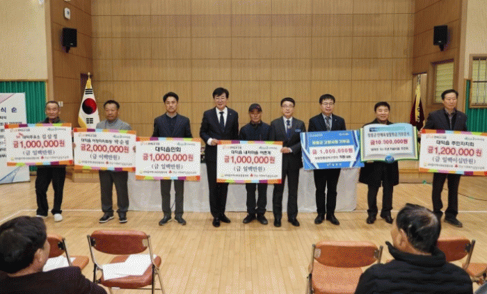 19일 대덕 다목적복지관에서 개최된 대덕읍 이장자치회 상견례 행사에서 여러 관내 단체·기업 및 개인들이 지역의 어려운 이웃을 돕기 위해 성금을 기부했다.