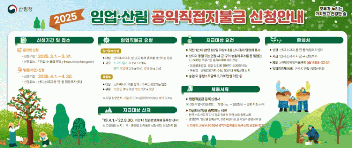 온라인 신청은 3월 1일부터 3월 31일까지이며‘임업-in 통합포털에서 신청할 수 있다.