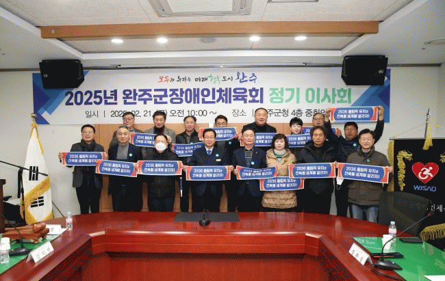 지난 21일 완주군청 4층 중회의실에서 개최된 정기 이사회에는 완주군장애인체육회 회장인 유희태 완주군수를 비롯해 부회장인 정완철 완주군애향운동본부장, 김덕연 완주군장애인연합회장, 박춘성 완주군장애인태권도협회장과 이사 및 감사가 참석했다.