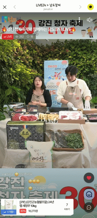 강진군 대구면 고려청자박물관 바로 옆 디지털청자박물관 1층에서 진행된 이번 라이브커머스에서는 강진의 대표 특산물인 햅쌀, 한우, 흑염소 진액, 표고버섯, 딸기, 낙지, 도다리쑥국 등 강진 제철 상품이 30% 할인된 가격에 판매됐다.