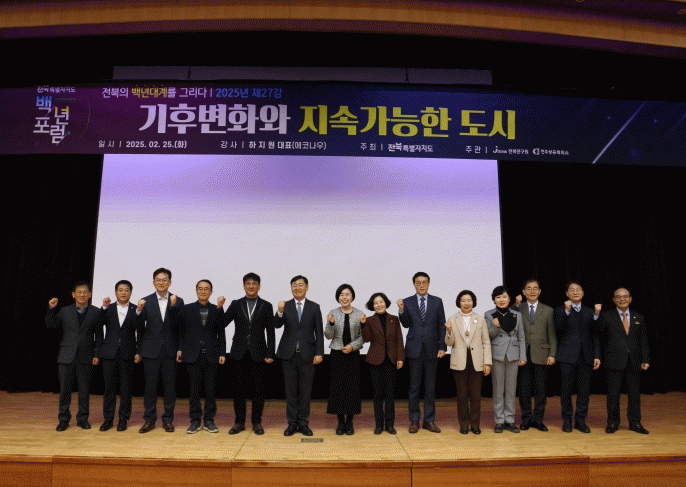 전북연구원은 25일 오전 8시 전북특별자치도청 대회의실에서‘기후변화와 지속가능한 도시’를 주제로 '전북 백년포럼' 제27강을 개최했다.